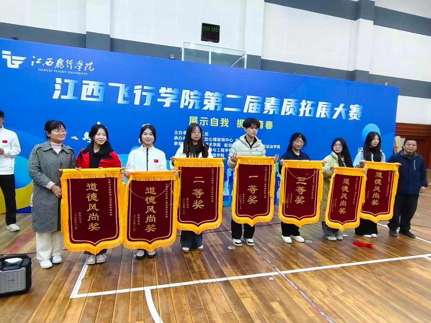 为促进学生全面发展,培养团队协作精神,12月17日晚,我校在大学生活动中心篮球馆隆重举行了第二届素质拓展大赛。本次大赛由学工处主办,心理咨询中心承办,共吸引了飞行技术学院、航空机电工程学院、航空运动学院、交通运输与工程学院、航空信息工程学院、经济与管理学院、文法学院等七支队伍积极参与,展开了一场智慧与协作的精彩较量。