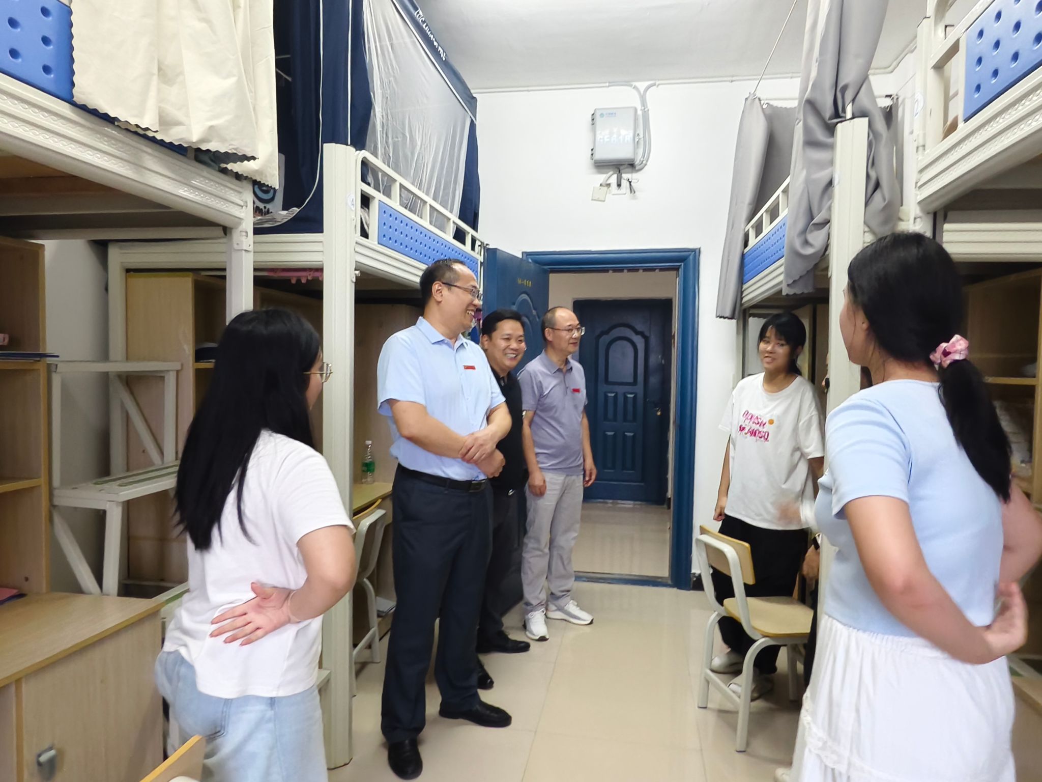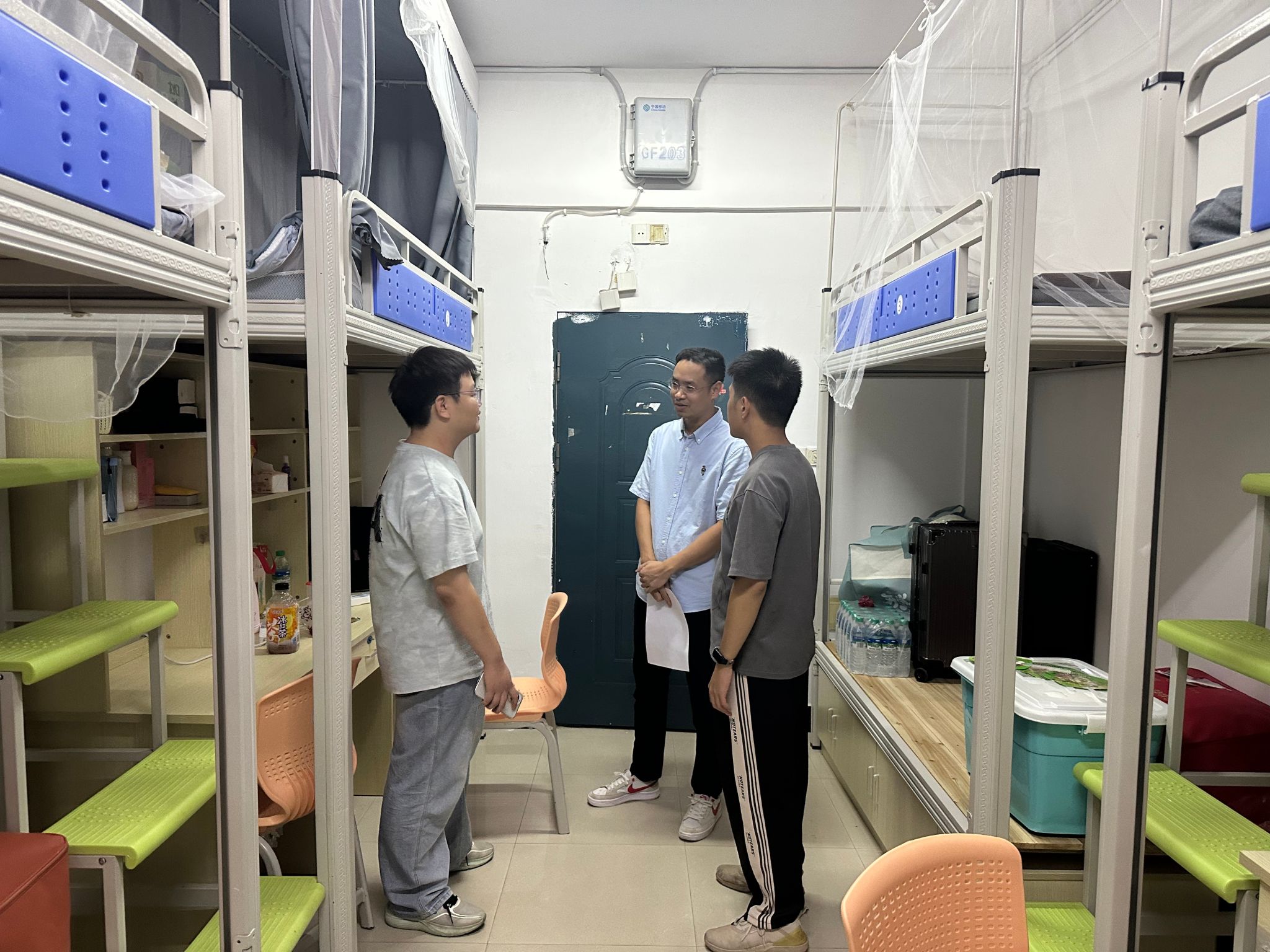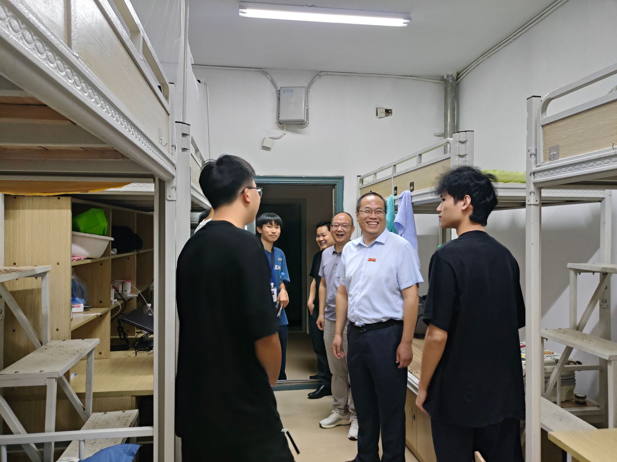 走访过程中,郭军华一行逐间走进新生宿舍,耐心询问新生行李安置、生活需求等方面的情况,详细回答宿舍作息、设施使用等问题。
