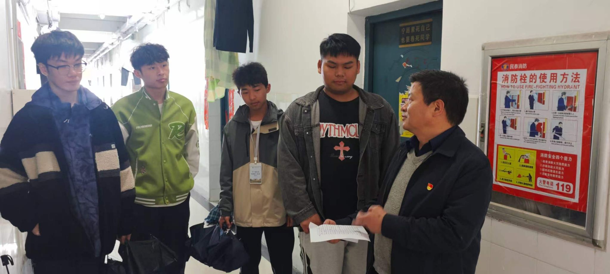 活动伊始,支部书记江智萍对学生宿舍各楼栋长、楼层长提出殷切期望,希望大家以高度的责任心和服务意识,认真履行岗位职责,以实际行动践行学生骨干的使命担当。之后,全体挂点党员深入各自联系的学生宿舍,实地走访调研宿舍环境卫生状况,与同学们面对面交流,广泛听取大家对宿舍卫生管理、环境优化的意见和建议。将党员挂点宿舍主题党日与树立和践行正确政绩观学习教育相结合,是机关第十七党支部创新党建活动形式、推动理论学习与实践育人相统一的重要举措。打破了师生沟通的壁垒,让党员教师深入学生一线,精准掌握学生需求,切实解决学生急难愁盼问题,以实际行动践行正确政绩观,进一步强化了支部党员的宗旨意识、责任意识,推动党员教师把正确政绩观转化为服务学生、履职尽责的实际行动。